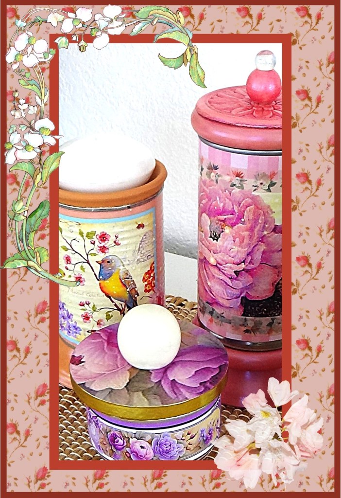 This was another winter project for my craft booth next Christmas. Repurposing cans is beneficial to the environment as well as a lot of fun to do. Of course, they can be useful in so many ways. In the bathroom to store qtips, bath bombs, holders for combs, brushes, etc. They work well on the office desk for paperclips, rubber bands, pencil and pen holders, snacks such as candy and nuts. Store USB cables out of site and tangle free. They make great jewelry containers as well.