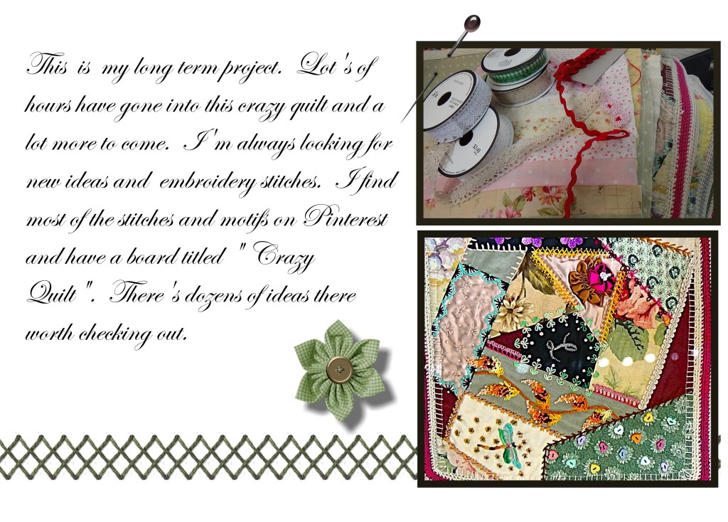 To check out my “Crazy Quilt” board on Pinterest, go to https://pinterestwww.com to Connie Peevey